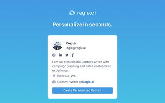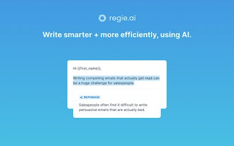 Regie.ai เป็น ส่วนขยายซอฟต์แวร์ฟรี ที่ช่วยให้ผู้เชี่ยวชาญด้านการตลาดและตัวแทนขายสามารถ สร้างข้อความอีเมลเป้าหมาย ได้อัตโนมัติ แอปนี้สามารถประหยัดเวลาได้อย่างมากในสถานการณ์ธุรกิจที่ เร็วเป็นพิเศษ ใดๆ